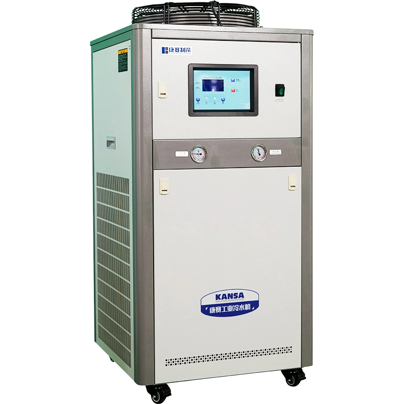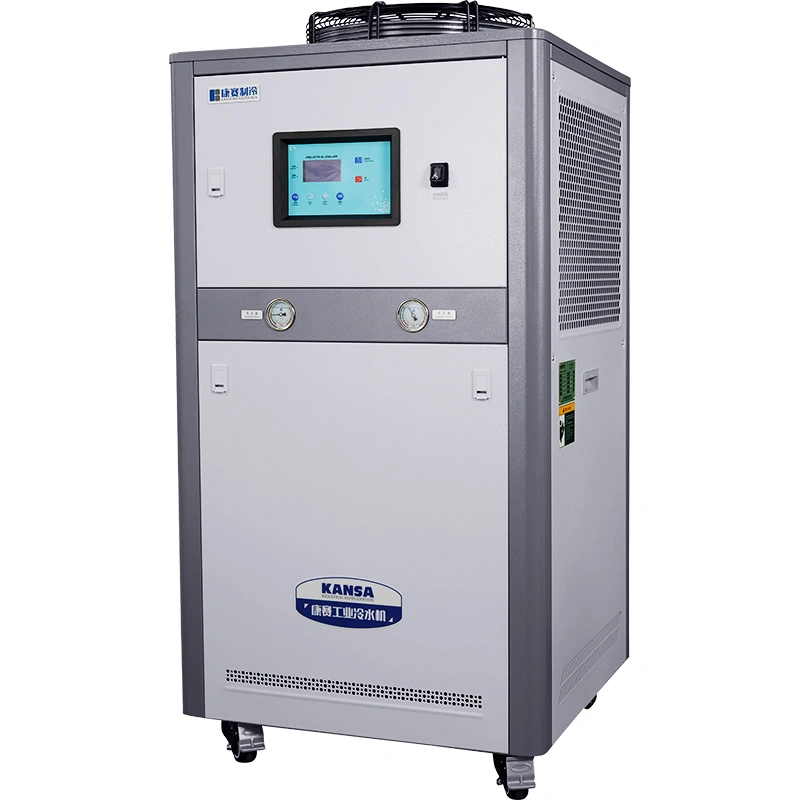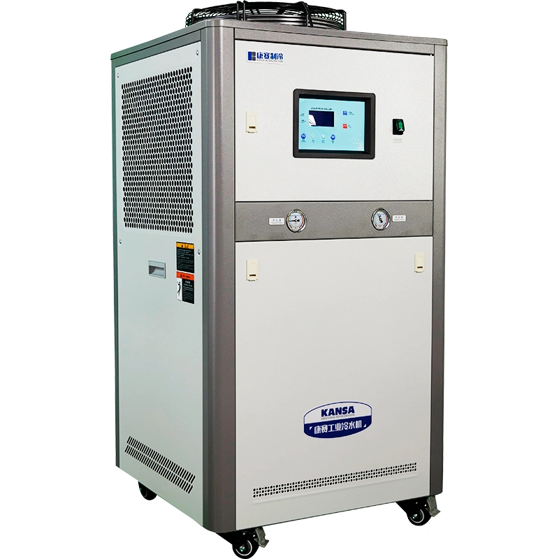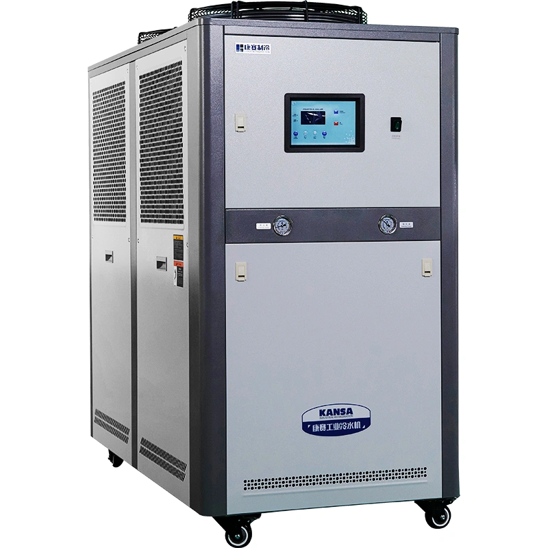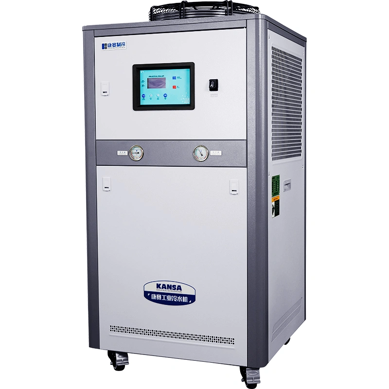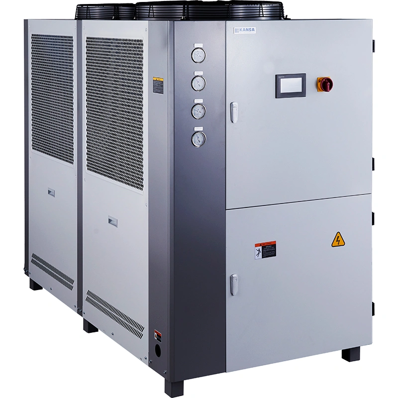 Промышленный чиллер с воздушным охлаждением использует окружающий воздух в качестве источника охлаждения. Он не требует установки градирни или специального машинно-компрессорного отделения. Отличается простотой установки, компактной конструкцией и эффективным использованием пространства и водных ресурсов. Чиллер Kansa обладает стабильной производительностью и точным контролем температуры, благодаря чему широко используется для регулирования температуры при литье под давлением, а также в химической промышленности, лазерном производстве и пищевой промышленности.