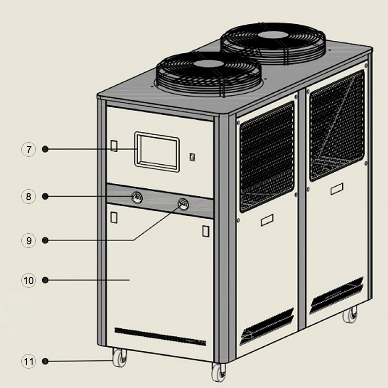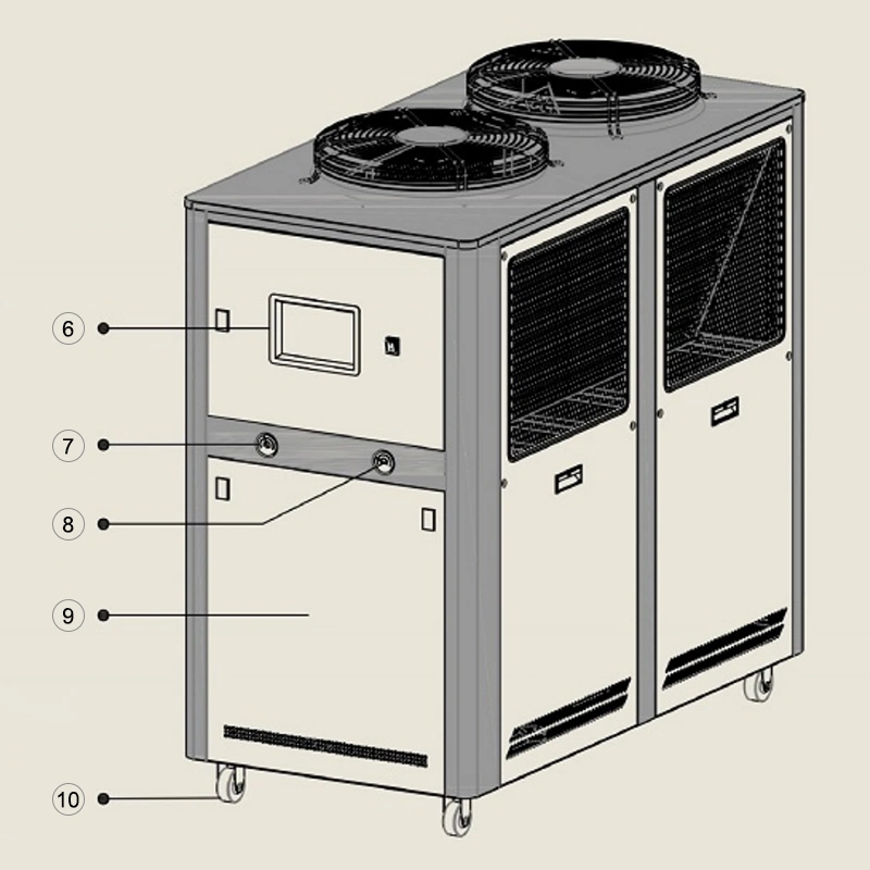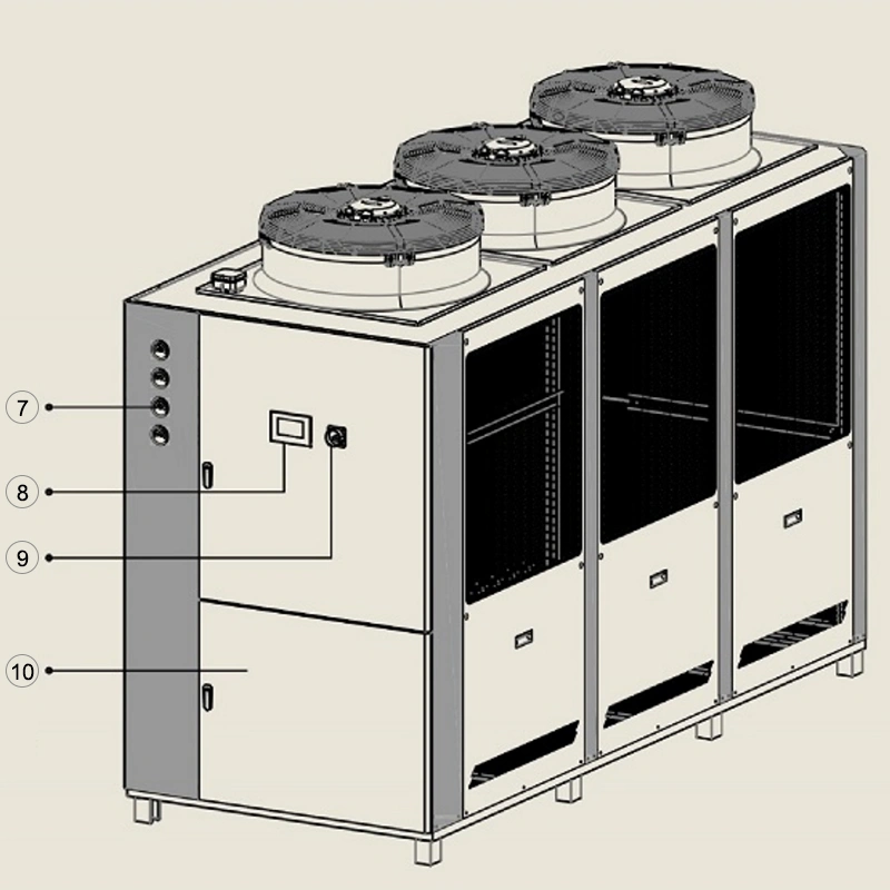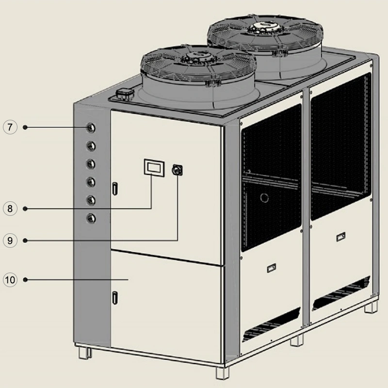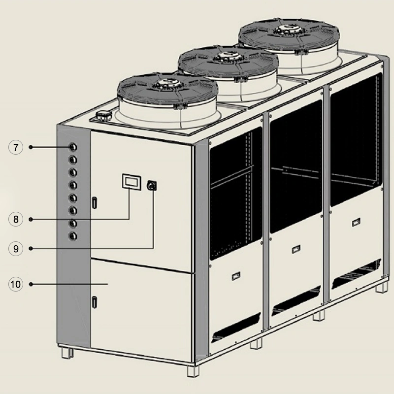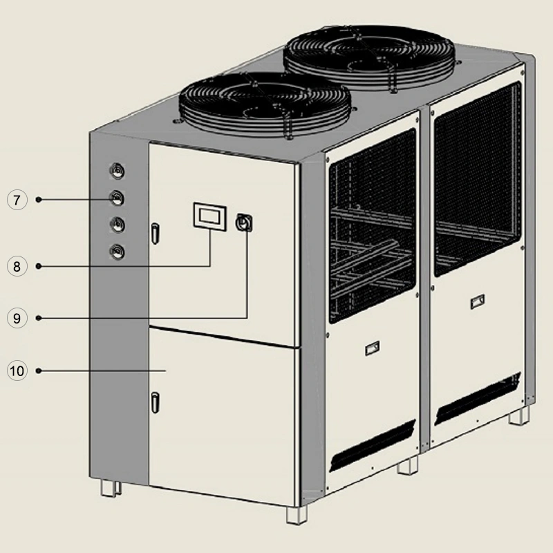 Промышленный чиллер с воздушным охлаждением использует окружающий воздух в качестве источника охлаждения. Он не требует установки градирни или специального машинно-компрессорного отделения. Отличается простотой установки, компактной конструкцией и эффективным использованием пространства и водных ресурсов. Чиллер Kansa обладает стабильной производительностью и точным контролем температуры, благодаря чему широко используется для регулирования температуры при литье под давлением, а также в химической промышленности, лазерном производстве и пищевой промышленности.