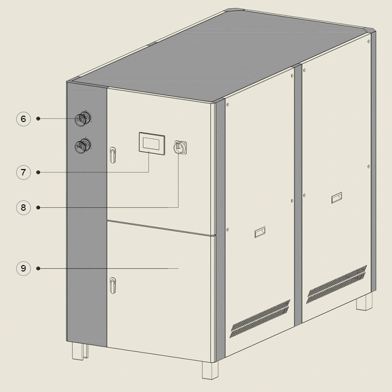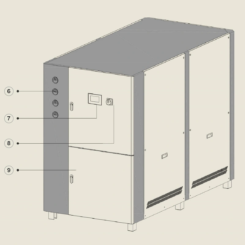 Промышленный чиллер с водяным охлаждением Kansa отличается высокой эффективностью и стабильностью работы. Он использует циркулирующую воду из градирни для конденсации хладагента, показывая высокую энергоэффективность и более надежную работу по сравнению с чиллерами воздушного охлаждения. Благодаря этому чиллер Kansa широко используется на крупных промышленных объектах и в высокотемпературных технологических процессах. Несмотря на компактные размеры, для его корректной работы необходима дополнительная система подачи охлаждающей воды.